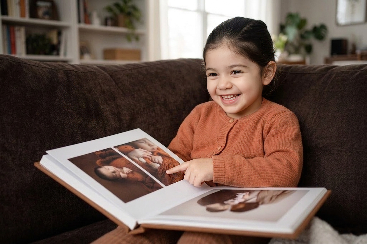 Quando mostramos fotos de quando eram bebês, de uma viagem em família ou de um simples piquenique no quintal, estamos ajudando a criança a construir a sua própria narrativa. Ela passa a se ver como protagonista da sua história, o que fortalece a autoestima e o senso de pertencimento.